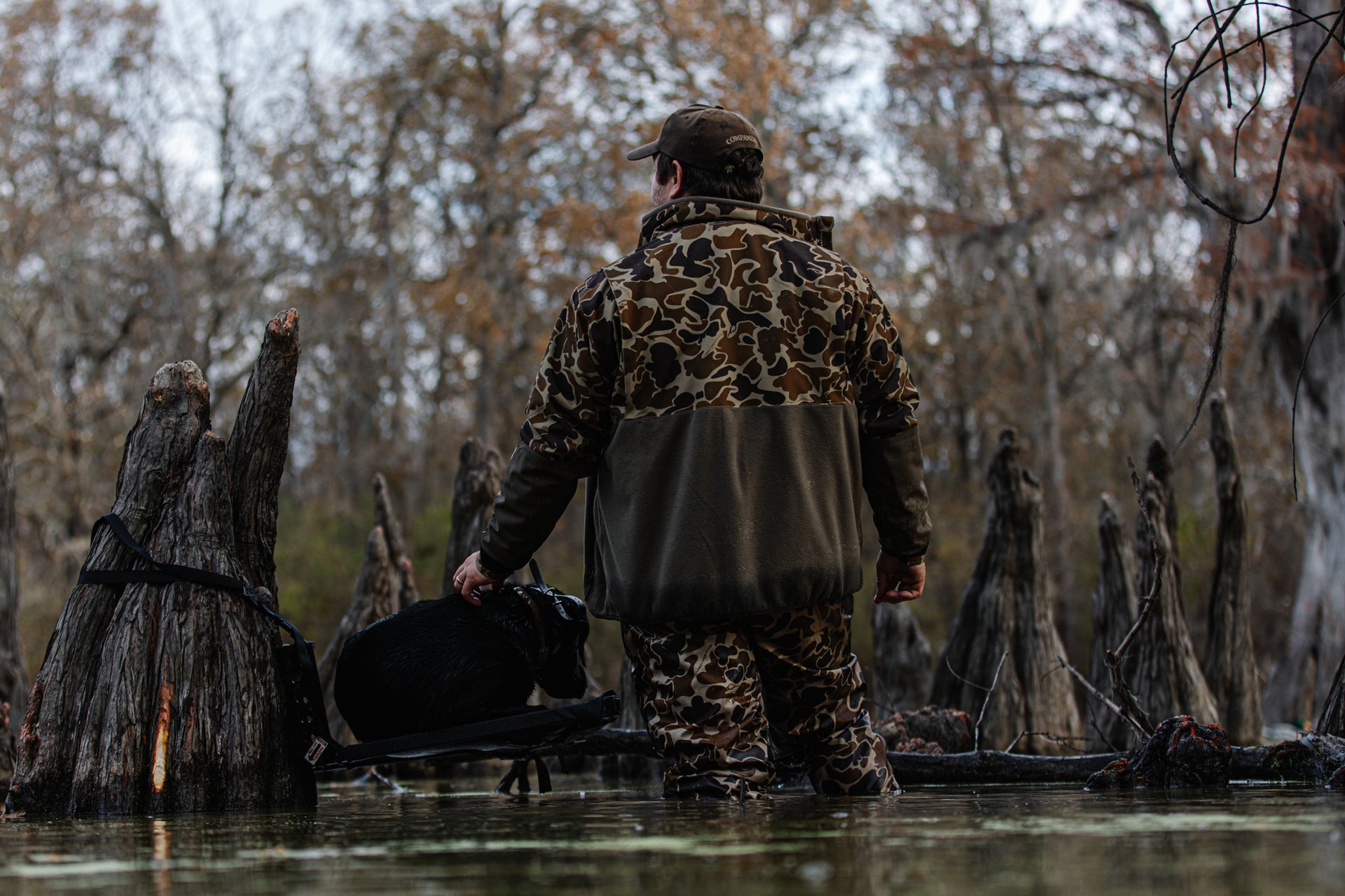 Perfect for staying comfortable under waders. This jacket delivers rugged reliability in demanding duck-hunting conditions. It's three-layer, high‑denier waterproof and windproof polyester upper keeps the elements out, while the 350 GSM fleece lower body maintains core warmth without overheating.