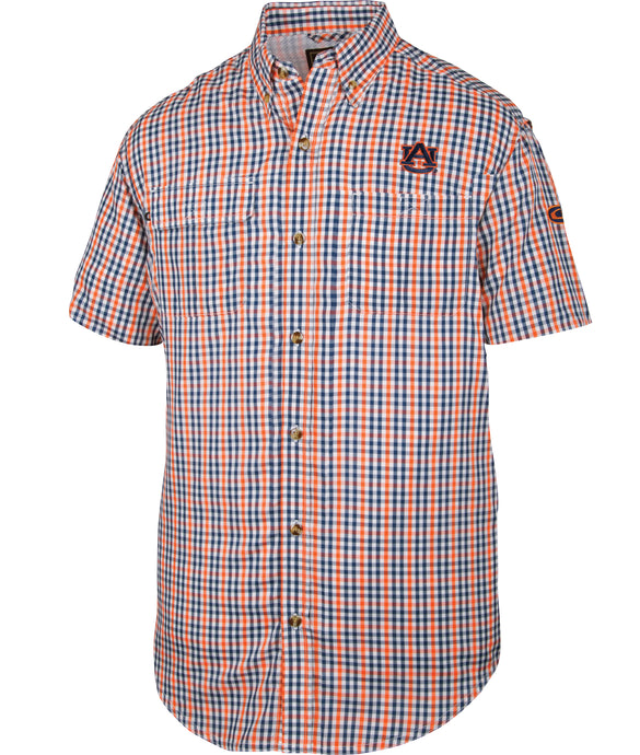The Auburn Frat Seersucker Short Sleeve Shirt combines performance with classic style. Crafted from 96% Polyester/4% Spandex lightweight seersucker fabric, it delivers built-in stretch, UPF 30 prot...
