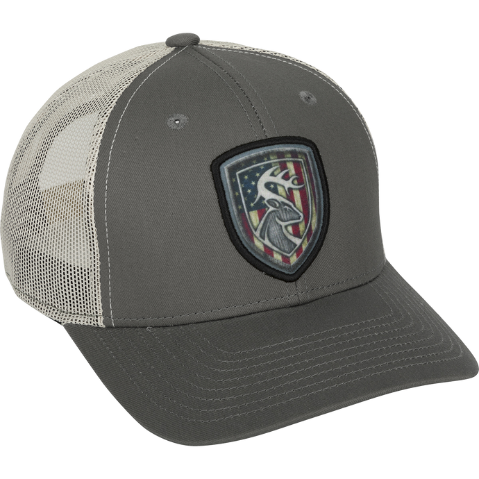 The Americana Shield Patch Mesh-Back Cap is made with 100% cotton twill front panels and light, breathable mesh o...