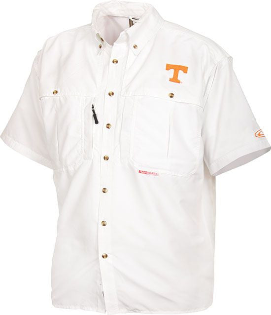 • Magnattach™ left chest pocket• Front and back heat vents• Sun blocker extension collar• Mesh back for air circulation• Zippered vertical right chest pocket• Large chest pockets• Wrinkle resistant EasyCare™ fabric